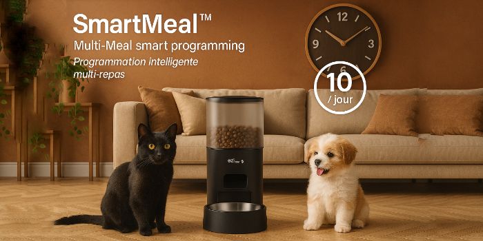 Programmez jusqu'à 10 repas quotidiens avec une précision millimétrique, parfaitement adaptés aux besoins de votre chat ou petit chien. Ce système intelligent vous permet de maîtriser les portions avec exactitude, de prévenir le surpoids et d'établir une routine alimentaire saine et régulière. Connectée à votre application mobile, cette technologie vous offre une tranquillité d'esprit totale : votre compagnon est toujours nourri aux bons moments, même lors de vos absences prolongées.